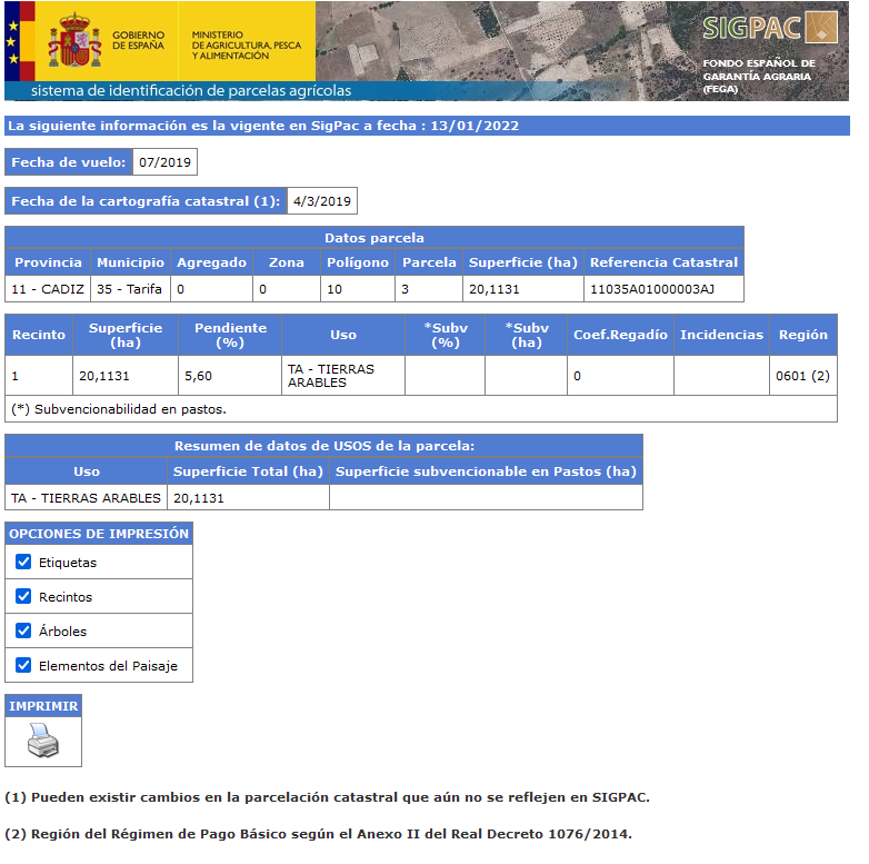 Esta información puede variar dependiendo de las propiedades de la parcela que se publiquen en SigPac.
